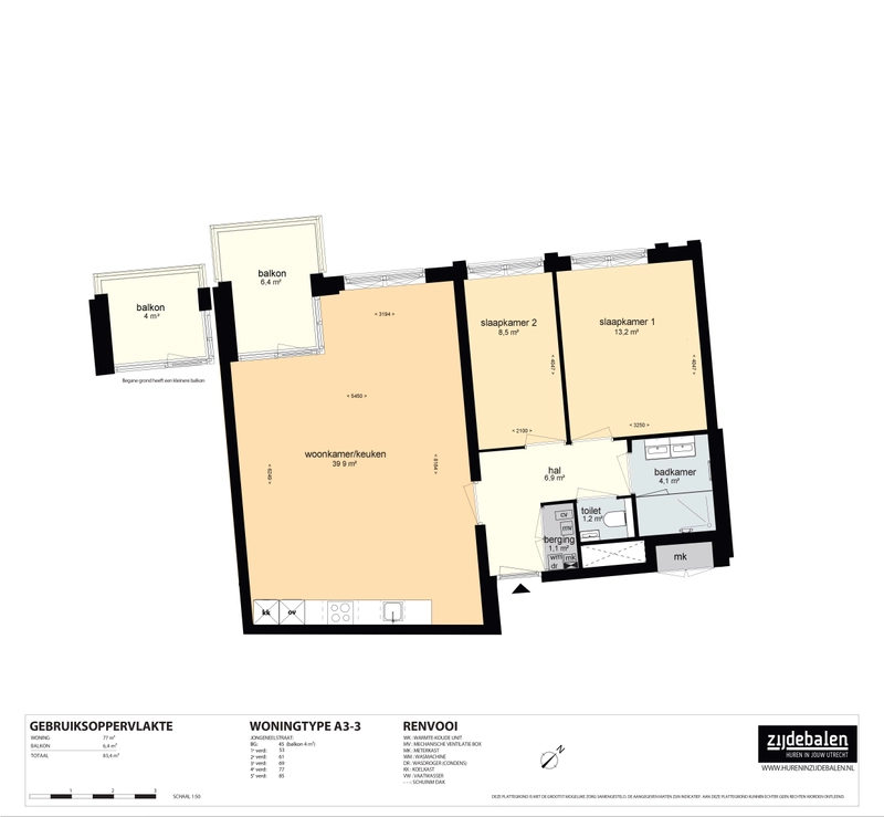 3 kamers2 slaapkamers77 m²
