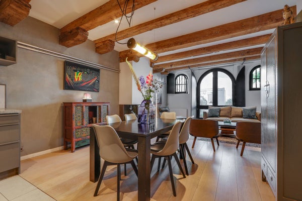 Beautifully renovated and bright three-room apartment on the Brouwersgracht. Located on the ground floor of a monumental warehouse. LAYOUT You enter the property into a beautiful hallway with a communal bike space on the left side. The entrance of the house on the ground floor leads you to the spaci